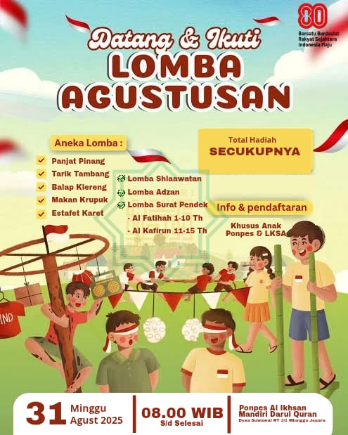 Dalam rangka memperingati Hari Ulang Tahun Kemerdekaan Republik Indonesia ke-80 tahun 2025, Panti Asuhan Mandiri Darul Quran mengajak para dermawan dan masyarakat luas untuk turut serta dalam penggalangan donasi kegiatan 17-an bersama anak-anak yatim dan dhuafa.