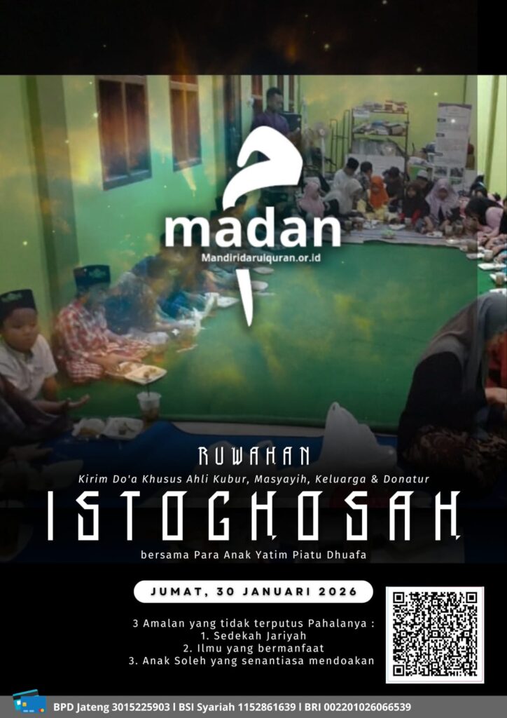 Dalam rangka meningkatkan keimanan dan melestarikan tradisi keagamaan, Mandiri Darul Qur’an menyelenggarakan kegiatan Ruwahan, Kirim Doa untuk Ahli Kubur, serta Khatmil Qur’an pada Jumat, 30 Januari 2026. Kegiatan ini diikuti oleh para santri, pengurus, serta masyarakat sekitar dengan suasana yang khidmat, tertib, dan penuh kekhusyukan.
